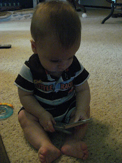 As I've mentioned before, Joshua loves Mommy and Daddy's toys. I can't decide if he's working on the computer or doing push-ups here--maybe a little of both.