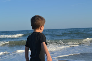 My sweet parents had extra timeshare points that needed to be used by the end of the year, so they sent our little family of four down to Myrtle Beach for the past week. It was SO nice to get away on a little family vacation before the baby comes (less than 6 weeks now!) We had such a great time! The weather was gorgeous for most of the week, so we spent lots of time outside. Every morning we took the kids to the indoor heated swimming pool, so they were in heaven! We had a wonderful 2-bedroom unit to stay in, with a big living room, dining room, fully equipped kitchen, and 2 bathrooms, so we had plenty of space and were able to do most of our meals for really cheap, which allowed us the opportunity to go out for some fun dinners (I think the kids' favorite was "Fuddbuckers," as Joshua called it, because of the race car arcade games). Hooray for fun family time! As usual, I wasn't the best about taking pictures (I get too into whatever we're doing to remember!), but David took some while we spent an afternoon at the beach, and I snapped a few after we picked up some Krispy Kreme Donuts one evening for the next morning's breakfast! Could you not eat up those 2 precious smiley faces?!